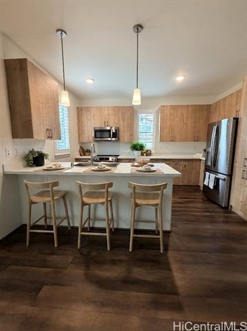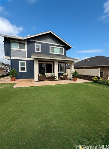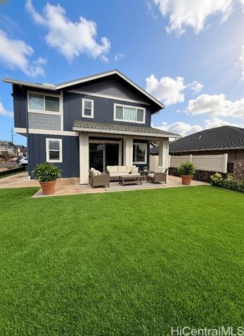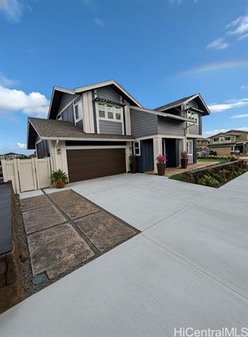 This barely lived-in home, with ALL the upgrades & landscaping, is located in one of Central Oahu’s most sought-after communities, Nanea II. It offers 3 bedrooms, 2.5 baths, plus a spacious den/loft that can be converted into a 4th bedroom. Positioned on a desirable corner lot, the home enjoys added privacy, light, and curb appeal. With nearly $100,000 in upgrades, this home is priced competitively with new construction offerings that include no upgrades or landscaping, making it a rare opportunity for the discerning buyer seeking immediate value. Luxury vinyl plank flooring flows seamlessly throughout the home, complemented by quartz countertops, plantation shutters throughout, added custom cabinetry in the entryway, and a new split A/C in the garage. An extra-large upstairs storage room adds even more flexibility for organization, hobbies, or seasonal items. The open layout transitions effortlessly to the outdoors, where a covered extended lanai, custom tropical landscaping, and lava rock retaining wall create a low-maintenance yet lush setting perfect for entertaining or unwinding. Full rain gutters and professionally designed landscaping complete the exterior upgrades.