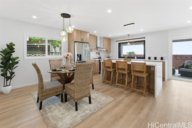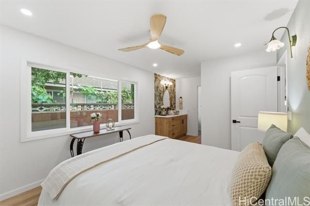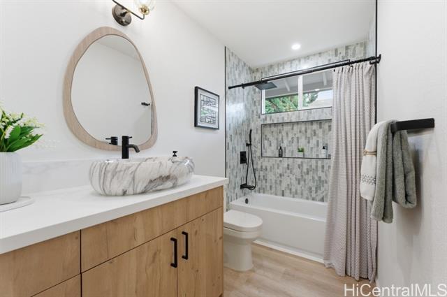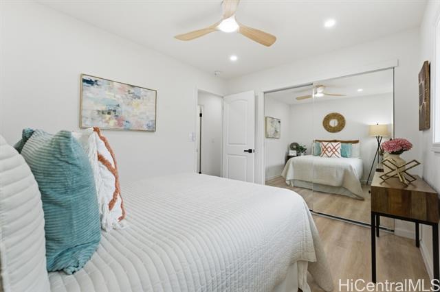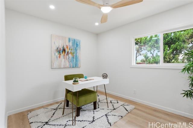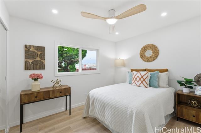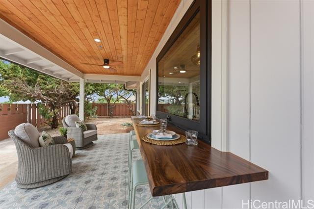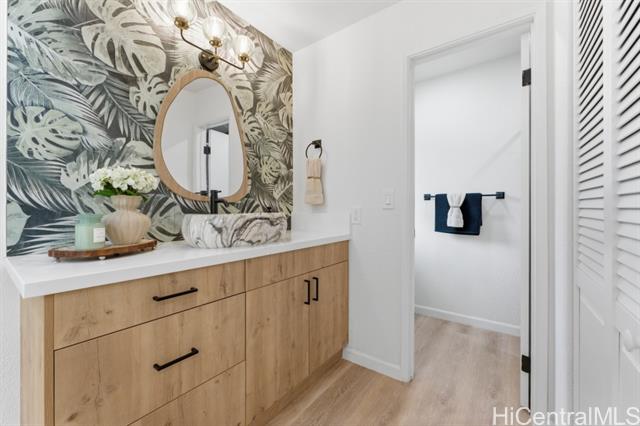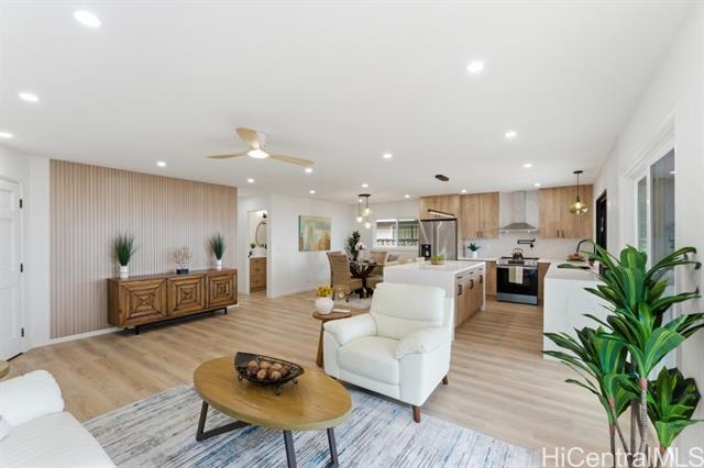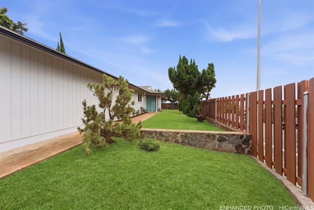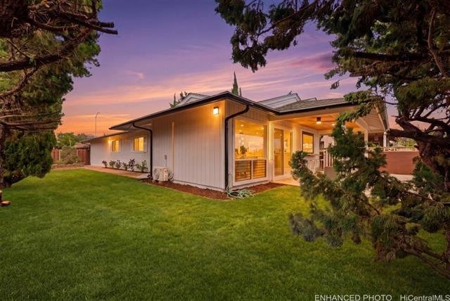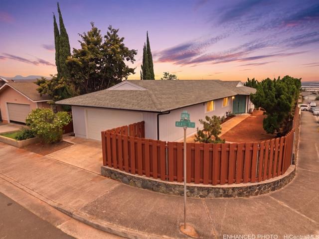 Move-in ready and fully remodeled, this three-bedroom, two-bath Village Park residence sits on an elevated corner lot. The home features new flooring, fresh paint, updated lighting and plumbing fixtures, split A/C, and a beautifully redesigned kitchen with new cabinets, quartz countertops with a waterfall edge, stainless steel appliances, and a pass-through window to the lanai bar counter. The primary bath features a tiled walk-in shower. Conveniently located in Waipahu near shopping, parks, schools, and major commuter routes! Home Features - 3 bedrooms - 2 bathrooms - 1,220 sq ft interior - 4,664 sq ft elevated corner lot - New flooring - Fresh paint on interior and exterior - Updated lighting and plumbing fixtures - New kitchen cabinets with quartz countertops with waterfall edge - Stainless steel appliances - Pass-through window to lanai bar counter - Tiled walk-in shower in primary bath - New Vanities and countertops with vessel sinks - Split A/C - Single-level layout - Garage and driveway parking