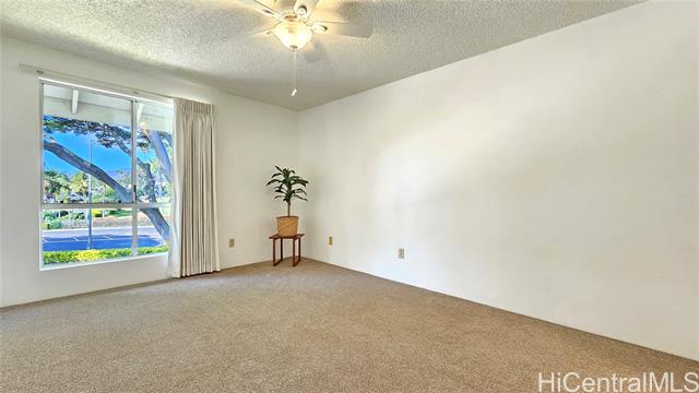 Golfer's Dream. Sweeping view of Waikele Golf Course. Shows better than a model. HIGHLY RENOVATED in 2025 with BRAND NEW paint, carpets, drapes, kitchen counter tops, sink, disposal, faucet fixtures, refrigerator, washer/dryer, ceiling fan in bedrooms, toilets, water heater, light fixtures and smoke detector. PRICED TO SELL! Quiet with great neighbors. LOCATION - close to freeway entrance & exit, restaurants, shopping center, park with pool, elementary school and Waikele Clubhouse. Guest parking, car wash area and street parking nearby. 100% insured. Pets allowed, please check condo docs.