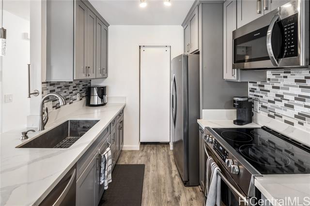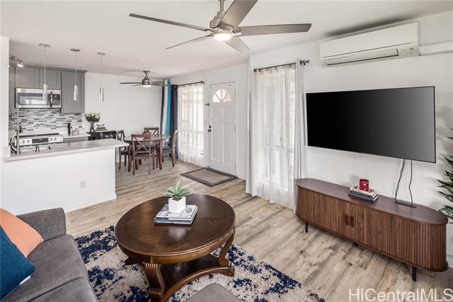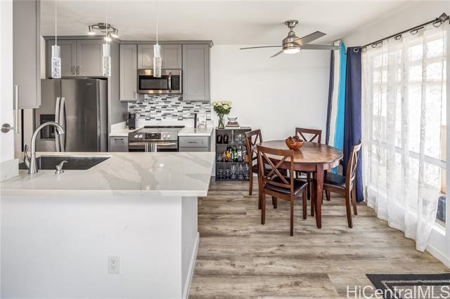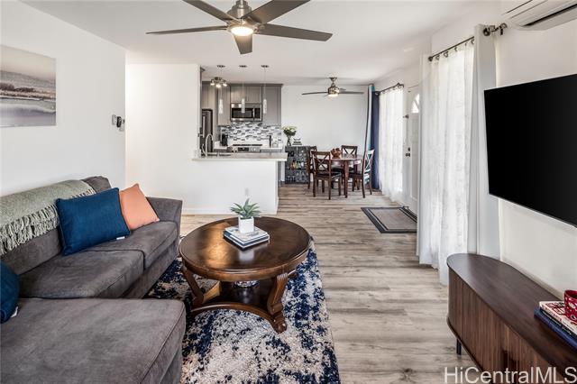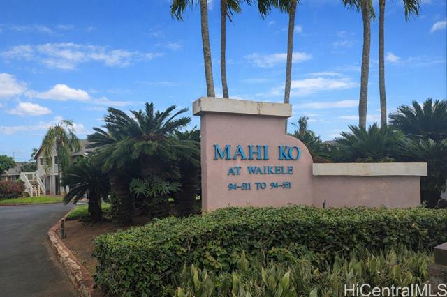Great chance to own a move-in-ready unit in Mahi Ko at Waikele complex. The property features a renovated and opened kitchen with large pantry. Upgraded bathrooms. New stackable washer and dryer. Vinyl floor throughout the unit. Large, covered lanai space for BBQ and relaxation. A-Dog friendly community. Walking/jogging path. Ample guest and street parking. Low maintenance fees. Convenient location, nearby Waikele Premium Outlets, golf course, Lowe’s, restaurants, and freeway access.