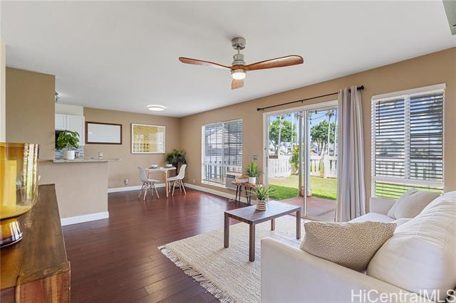 Don't miss this rarely available ground-floor corner unit with a HUGE fully fenced private yard perfect for outdoor entertaining! Enjoy the convenience of two covered side-by-side parking stalls located right in front of your unit. Step inside to find a newly renovated kitchen and an open floor plan, creating a bright and inviting space for living and entertaining. Centrally located near Schofield Barracks, Wheeler Army Airfield, the H-1 Freeway, and Joint Base Pearl Harbor-Hickam, this home offers easy access to work and recreation. Plus, it is within walking distance to the Waikele Premium Outlets, where you can enjoy top-tier shopping and dining. With low maintenance fees and a layout that feels just like a single-family home, this is a must-see opportunity! Schedule your showing today!
