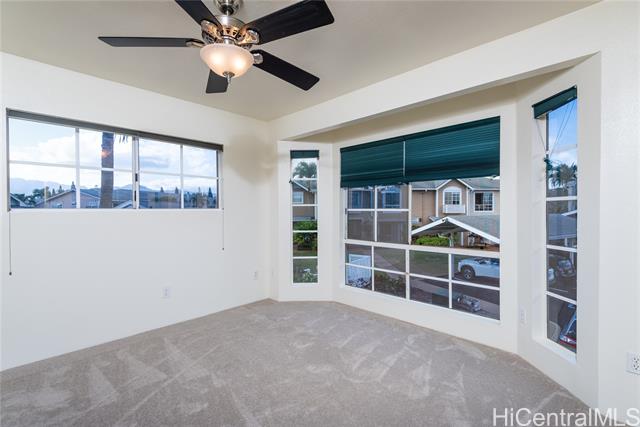 Huge price reduction! Rare 3 bedroom, 2 full bath, 1,029 sq. ft. condo at Village on the Green in Waikele. In addition, this 2nd floor unit offers a large 93 sq. ft. lanai with tree top views. Your 2 assigned, parking stalls, one covered, one open are located very close to your doorstep. This home has been newly painted, with brand new carpet throughout. New light fixtures an fans have been installed. AC in living room. All this in the planned community of Waikel with it's golf course, Outlet Mall, restaurants and parks. Townhouse is in very good condition but being sold "as is".