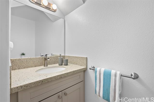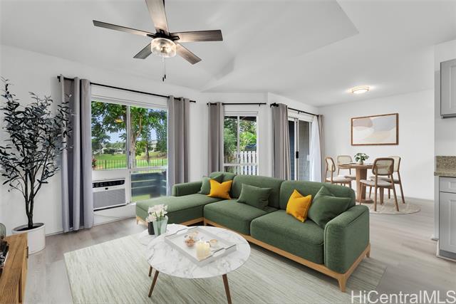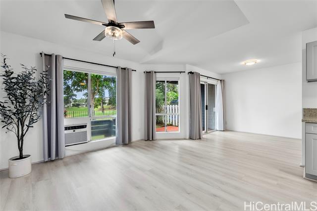 Discover this beautifully renovated 3-bed, 2.5-bath townhome which offers the privacy & comfort of a single-family home, with the added bonus of breathtaking views of the Waikele Golf Course. Perfect for golf lovers & those who appreciate serene, green surroundings, this home combines modern luxury with a peaceful retreat-like ambiance. Inside, you'll find a sleek, gourmet kitchen featuring elegant quartz countertops, new cabinetry, and stainless-steel appliances. The LVP flooring enhances the home’s sophisticated style, while the updated bathrooms offer a spa-like atmosphere. A spacious two-car garage provides convenient direct access to the kitchen, and the fenced, landscaped yard is perfect for outdoor entertainment or relaxing while enjoying the lush views. With a well-designed layout and abundant natural light, this home truly feels like your own private oasis. Centrally located just minutes from Waikele Shopping Center, the H1 Freeway, Central Oahu Regional Park & Waipio Soccer Complex. Whether you’re shopping, dining, or enjoying outdoor activities, everything is just a stone's throw away. Don’t miss your opportunity to own this exceptional property—schedule a showing today!