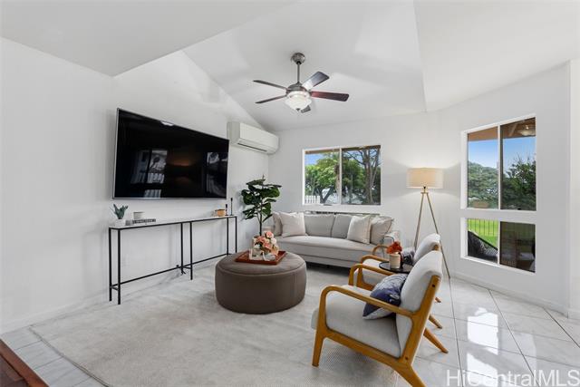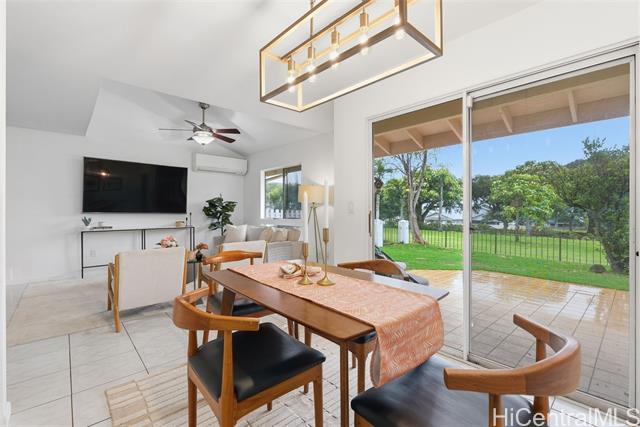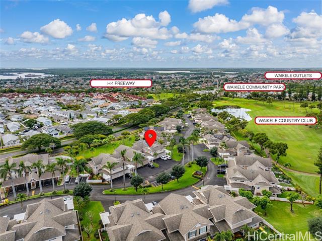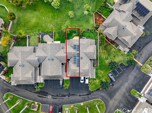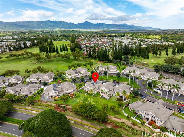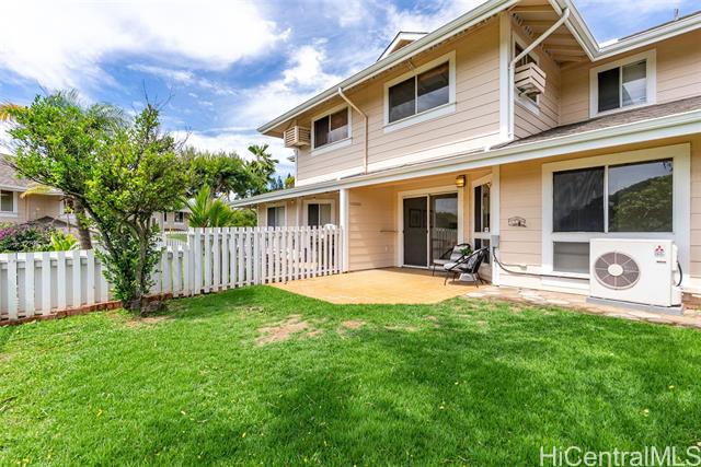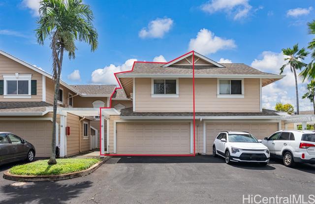 Have you been searching for more space to live without stretching into a higher price point? Set within a lush green setting, this 3 bedroom home at the highly desired Greens at Waikele offers the rare convenience of 4 parking spaces, including a private 2 car garage. Designed to live like a single family home, it is surrounded by open landscaped grassy areas that create a sense of space and separation without the maintenance, complemented by a fully fenced yard. The open, functional layout connects the living, dining, and kitchen areas, creating a seamless flow that enhances both entertaining and everyday ease of living. A half bath on the main level adds convenience, while features such as an exterior storage closet and owned PV panels contribute to everyday efficiency. Located in a well maintained community with ample guest parking, nearby walking paths, a recreation center with pool and classes, parks, and pet friendly areas, all just minutes from Waikele Premium Outlets, Costco, and freeway access, offering both comfort and connectivity in one compelling opportunity.