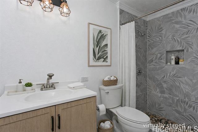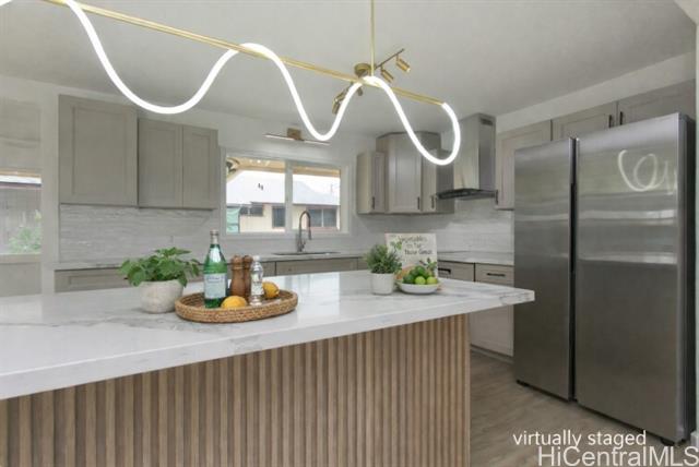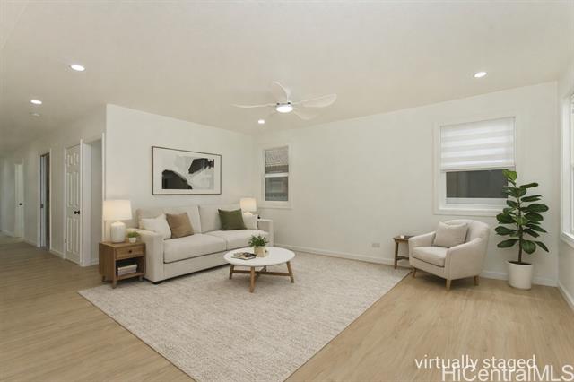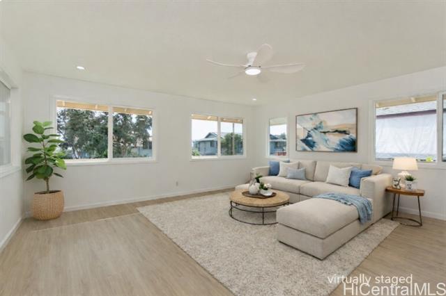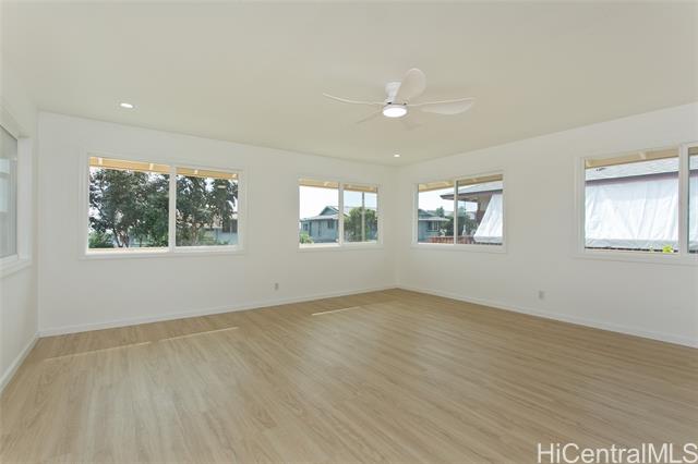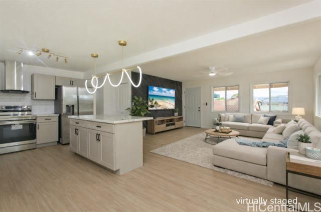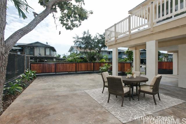 OPEN HOUSES: 12/20 (Sat.) and 12/21(Sun.) 2-5 PM and 12/28/25 (Sunday) 2-5 PM NO KIDDING! THIS IS A MUST SEE! Fabulously totally renovated huge home with good quality materials and design! This house can be separated into 2 living units - bottom floor 3 bedroom/1 bath and top floor 3 bedroom/2 bath with interior and exterior stairs and separate entrances if desired. New interior/exterior paint, new waterproof luxury v plank flooring, brand new roofing, BRAND NEW KITCHEN, stainless steel appliances, new washer/dryer, all BRAND NEW bathrooms, new ceiling fans, new light/plumbing fixtures and new water heater, and MUCH MORE! Amazing potential for Foster care, CARE HOME, multi-generational living, or other similar uses. HUGE LANAI UPSTAIRS extending from the versatile family room. Large parking area and nice level front yard for entertaining. Conveniently located near Waikele Shopping Center, schools, restaurants, places of worship, freeway and much more. This will not last long.