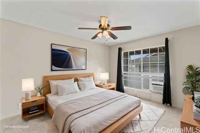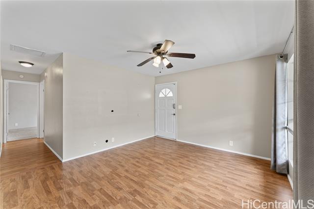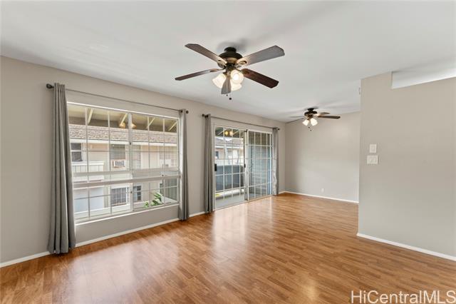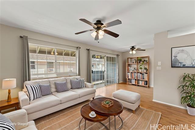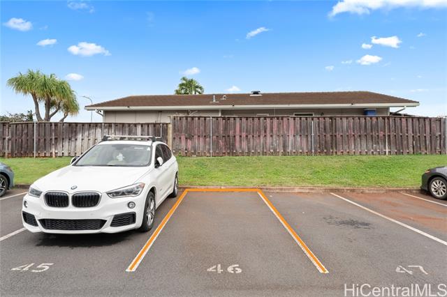 Live in the quiet, well-established Waipio Gentry neighborhood! This unit has beautiful wood laminate floors, balcony, attic fan to cool the house on hot summer days, full-size washer & dryer, carpet in the bedrooms, window AC units, walk-in closet in the larger bedroom, and most importantly 2 ASSIGNED PARKING STALLS! Conveniently located just between Schofield/Wheeler & JBPHH/Camp Smith. Also centrally located between Downtown Honolulu and the fast-expanding 2nd city of Kapolei! Water/Sewer is included in maintenance fees.