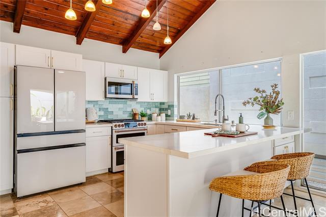 Must see well taken care of single family home with two car garage on a cul-de-sac in Waipio Gentry. The kitchen was recently renovated in 2024 with no expenses spared on appliances including Samsung's double oven gas range with air fry & griddle, and Bespoke white glass fridge with Ice maker. Plus dishwasher, washer/dryer & water heater installed in 2023. The home feels bright and spacious with picture windows throughout and vaulted ceilings. The primary bedroom has a massive bathroom with dual closets, tiled shower room and bidet. The roof was recently replaced in 2022 with aluminum shingles and silicone. New skylights with built in blinds installed in the bonus room and termite tented. The exterior was just painted and new hardscaping planted in 2025. At the end of the cup-de-sac is a walking path. Centrally located between H1 & H2. Just minutes from the shopping center dining, car wash 808, Costco, Kaiser, and Central Oahu Regional Park; a 269 acre public park with sport facilities, Olympic pool, archery range, keiki playground and more. VA assumable available at 2.25% rate with current balance approx. $600K