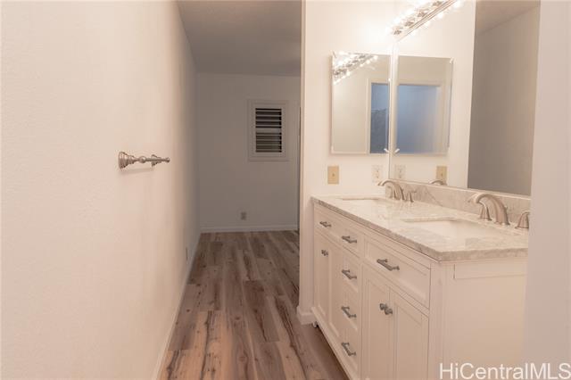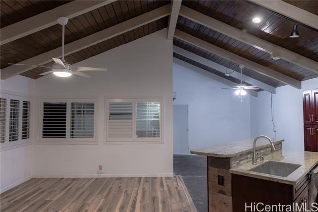 Beautiful 3 bedroom, 2 bath single level home located in the highly desired neighborhood of Waipio Gentry.. The owned photovoltaic panels makes it energy efficient saving you on your electric bill. Newer roof installed in 2024. Recently installed luxury vinyl planks in the living room, hallway and bedrooms. In the primary bedroom bathroom, new vanity with dual sinks. The vaulted ceilings in the kitchen, and dining area create an open, airy atmosphere and makes the home feel spacious and inviting. The living room features elegant window shutters. Just minutes away from Costco, Foodland, restaurants, school, Waikele Outlet and freeway entry. Hurry! This won't last long!
