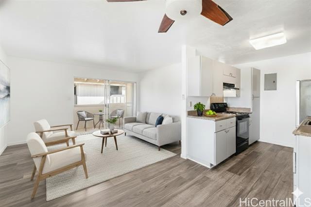 Best priced fee simple 2-bedroom opportunity in Waipio Gentry. This corner/end unit features updated flooring, fresh interior finishes, and a bright open layout filled with natural light. Enjoy mountain views from your private lanai along with the convenience of in-unit laundry and assigned parking. Located in a well-maintained community near shopping, dining, freeway access, and military bases. Move-in ready condition offering strong value.