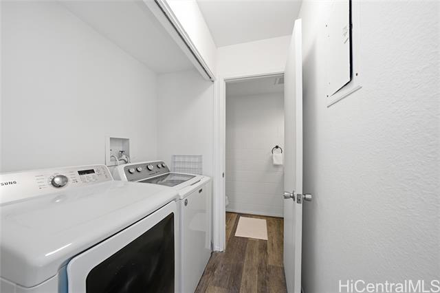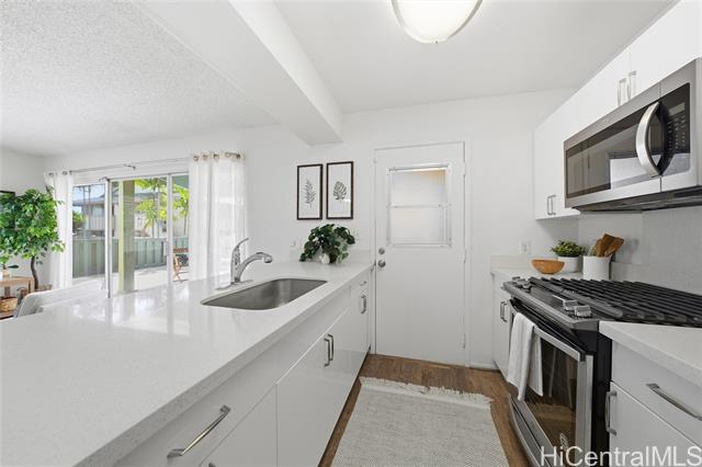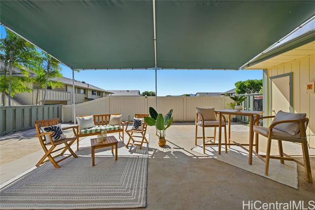 This inviting Penakii townhome in Waipio Gentry is ready for you! The floor plan is open & spacious with easy flow between the living room, kitchen, dining & outdoors. The kitchen has been renovated recently with a clean, modern look & stainless steel appliances. This property has a nice vibe with a good blend of modern contemporary elements while maintaining comfort. Laundry is discretely but conveniently located near the kitchen. A half bathroom is located downstairs. This corner location offers a large, fenced outdoor space with multiple potential uses. Entertain a large group or just enjoy the private space solo. Two of the bedrooms upstairs are roomy with views of the Waianae Range. The primary suite has a walk-in closet and dedicated vanity. Each room has air conditioning. Exterior paint was just completed. Roofs replaced in 2018. Penakii is a quaint community among single family homes. A community path to that leads to Kaneolani Elementary & a public park is close by. Central Oahu Regional Park with a competitive pool complex, tennis courts, baseball & soccer fields is in close proximity. Waikele Shopping Center, Safeway, Foodland, & Costco are too! Open House 10/26th 2-5.