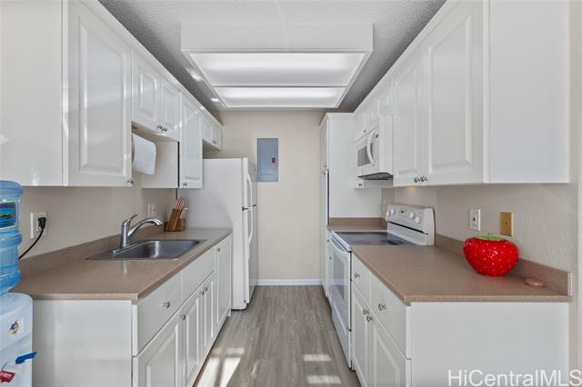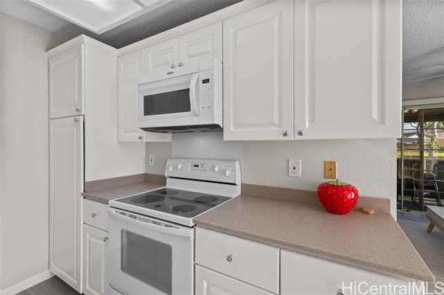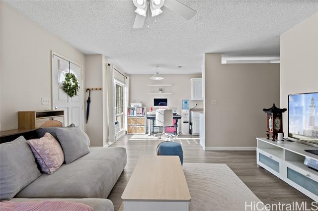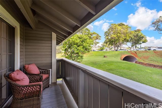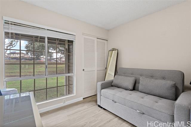 Welcome to Royal Palm at Waipio! Step right into this cozy 2 bed, 1 bath condo with a thoughtful layout and 1 parking. This home is perfect for those who need a move-in ready unit as it has brand new vinyl flooring throughout, new washer and dryer, and brand new window ACs, ceiling fans, and blinds in the living room and bedroom. The freshly painted bathroom features new ceramic tile, shower head, and a new toilet. In the kitchen, you will find a new over the range microwave, new GFCI outlets, new pullout trashcan, and new garbage disposal. This beautiful home also has a spacious lanai with a peaceful view and no other units behind you. If commute is important to you, this home is very centrally located between several cities. You are about 15 minutes from Schofield Barracks/Wheeler Army Airfield and JBPHH, and 20 minutes from Tripler Army Medical Center. Schedule a tour today! OPEN HOUSE SUNDAY FEB 15, 2026 FROM 2-5PM!