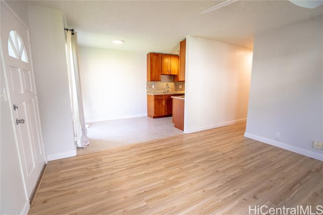 Welcome to the highly desired community of Royal Palm in Waipio Gentry. This 2 bedroom, 1 bathroom and 2 covered parking with patio home has been recently renovated in 2022 with new vinyl flooring, baseboards and paint. Conveniently located near parks, playgrounds, bike paths, schools, shopping centers and grocery stores. Royal Palm is a well maintained community that boasts a swimming pool (currently being renovated), bbq grill area, site manager and security patrol.