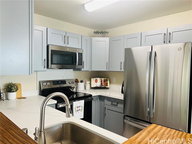 Beautifully renovated 2-bedroom, 1 full and 2 half-bath corner-end unit in The Villages at Waipio. This updated two-story home features new cabinets, flooring, paint, and appliances. Enjoy cool breezes, morning sunlight, an enclosed yard, under-stair storage, and a walk-in closet in the primary bedroom. Conveniently located near H-2, Waikele Outlets, Costco, and more. Community amenities include a clubhouse, pool, playground, car wash area, and 24-hour security. $10,000 CREDIT TO BUYER AT CLOSING. Don't miss this opportunity!