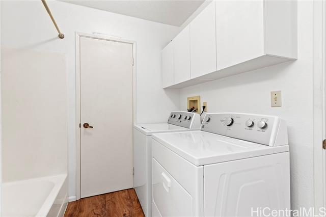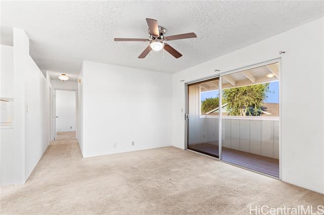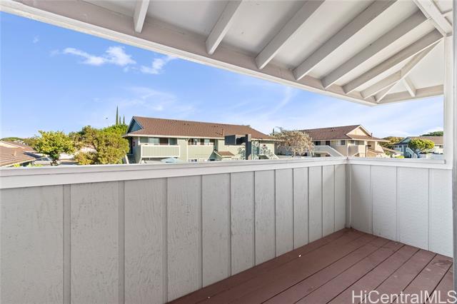 Discover comfort and convenience in this highly desirable upstairs corner-unit townhouse located in the heart of Central O?ahu. This well-maintained 2-bedroom, 1-bath home in Hikino Three offers an inviting layout with plenty of natural light and a private patio-perfect for morning coffee or evening relaxation. Inside, you'll find laminate flooring in the kitchen and bathroom, with soft carpeting throughout the living areas and bedrooms. The home includes an in-unit washer and dryer, and one dedicated parking stall, with ample guest parking available nearby. Ideal for first-time buyers, downsizers, or investors, this property is conveniently located near shopping, schools, restaurants, and freeway access. Enjoy quick commutes to major military bases: approximately 21 minutes to Hickam/JBPHH, 32 minutes to Kaneohe Marine Corps Base, and 21 minutes to Schofield Barracks.