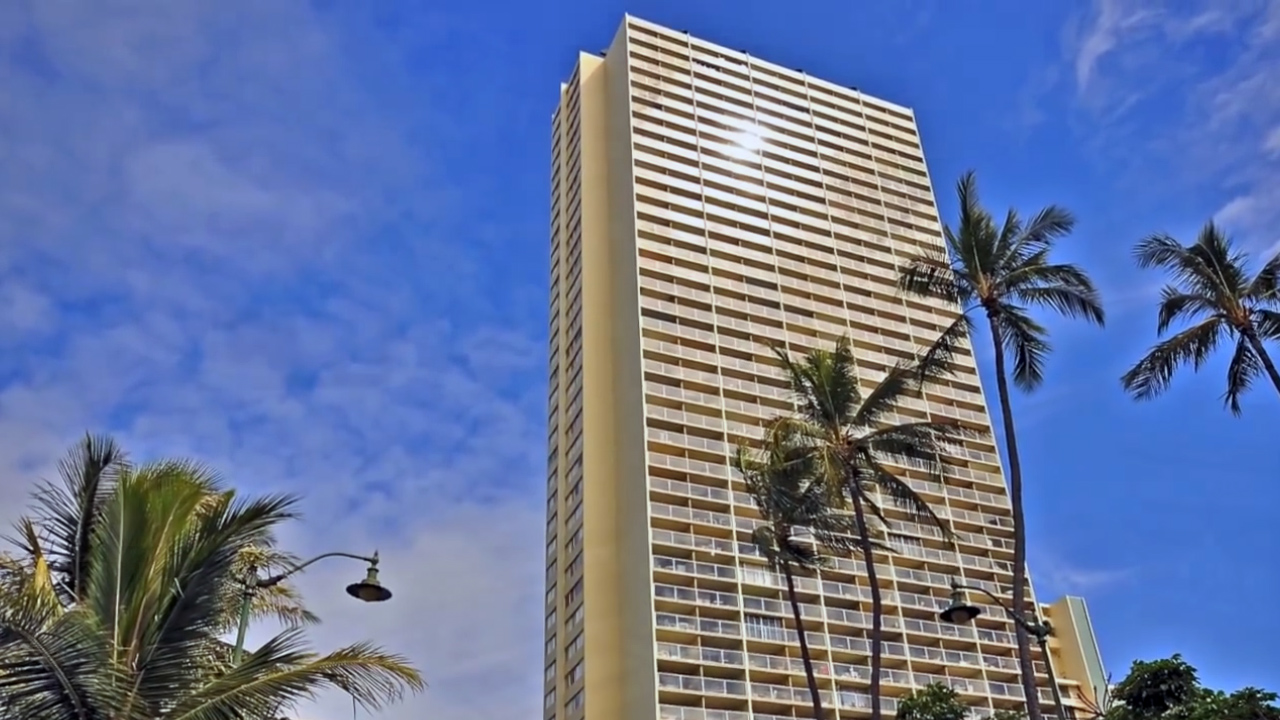 Built in 1979, the Island Colony is a 44-story condotel located along the Ala Wai Canal, on the mauka (mountain) side of Waikiki. The majority of units are fee simple, but a handful of leasehold units remain (most with fee available for purchase).