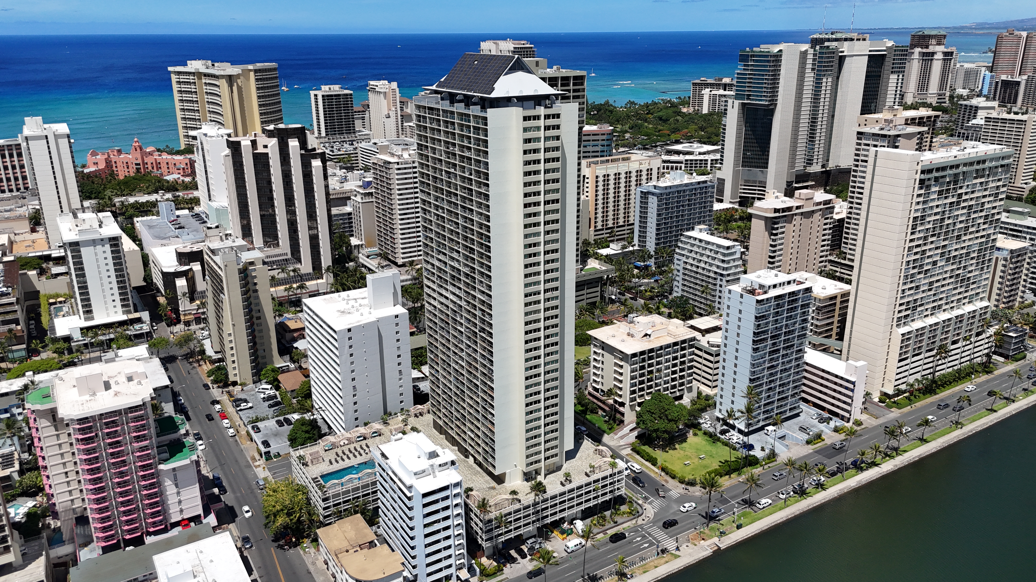 Island Colony is a very well-known condotel (both a condo and hotel) in Waikiki, due to its location and price point. Of its 700+ units, about 150 units are in the hotel pool; the remainder are either owner-occupied, rented or used as vacation rentals. Owners who self-manage can only do rentals of 30 days or longer. About 96 of the rooms are managed by Aqua, under the brand “Aqua Skyline.” The 44-story building has panoramic views of Waikiki's skyline, Diamond Head and the Pacific Ocean.