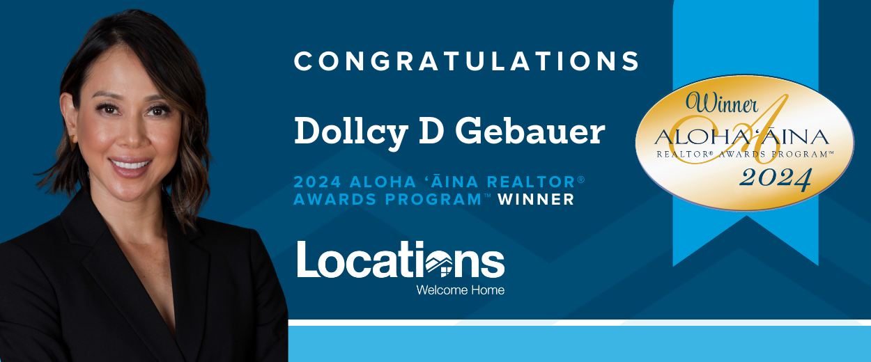 On November 22, 2024, Locations Realtor® Dollcy Gebauer was recognized by the Honolulu Board of Realtors® with a prestigious Aloha ‘Āina REALTOR® Award for exceptional client service. Dollcy’s client nominated her for her exceptional dedication and compassionate support, which went above and beyond during a challenging divorce sale. Dollcy’s exceptional service went far beyond expectations, leaving a profound impact during a difficult time.