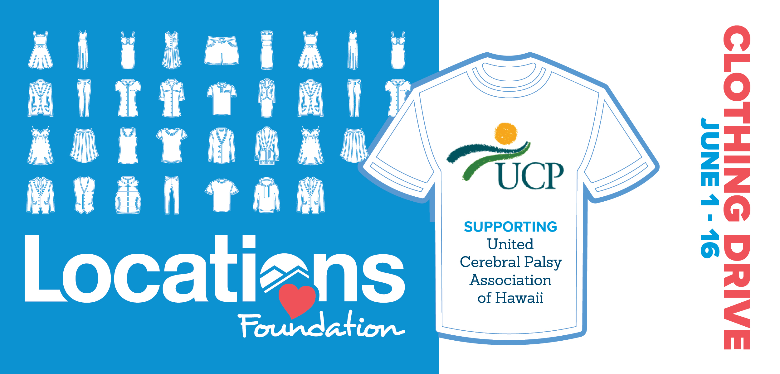 We're pleased to kick off our 10th annual Locations Foundation Clothing Drive June 1. This year, we'll be once again collecting gently used clothing and other items to benefit the United Cerebral Palsy Association of Hawaii. From June 1 to June 16, drop off your lightly used articles of clothing at any Locations office.