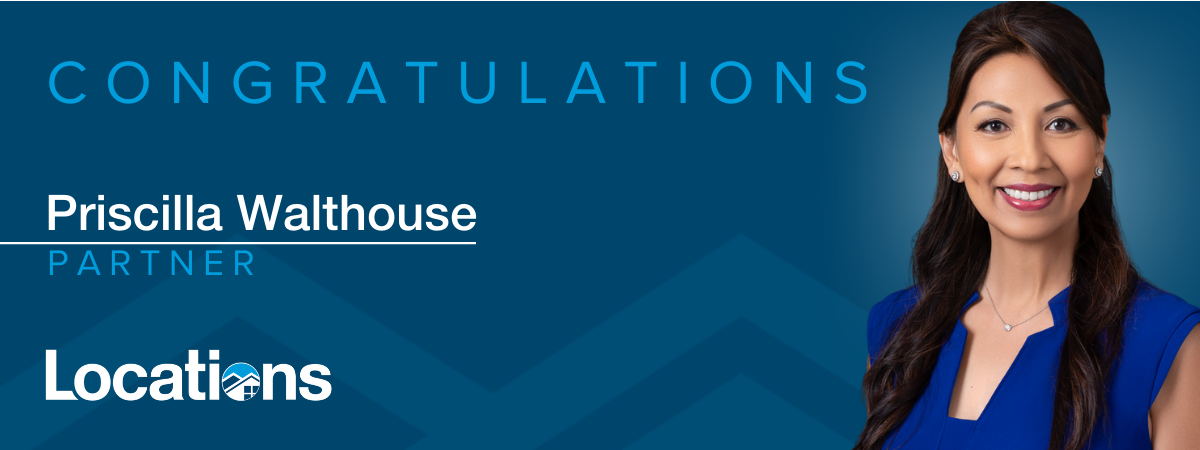Locations is pleased to announce that Priscilla Walthouse was promoted from Associate Partner to Partner in June 2022. A Realtor® for more than two decades, Priscilla has earned numerous awards throughout her career, including the Locations’ Client Service and Platinum Society Club awards.