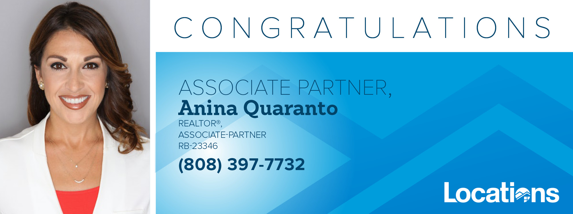 Locations named Realtor® Anina Quaranto its newest Associate Partner in April 2021, joining an elite group of 31 partners in the firm.