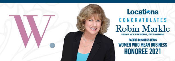 Robin Markle, Senior Vice President of Development for Locations, was named a 2021 Women Who Mean Business honoree by Pacific Business News on August 6.